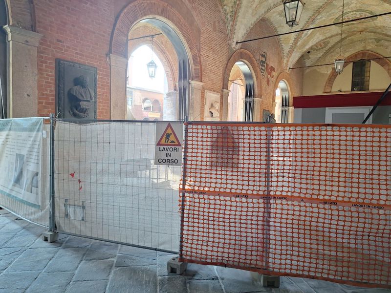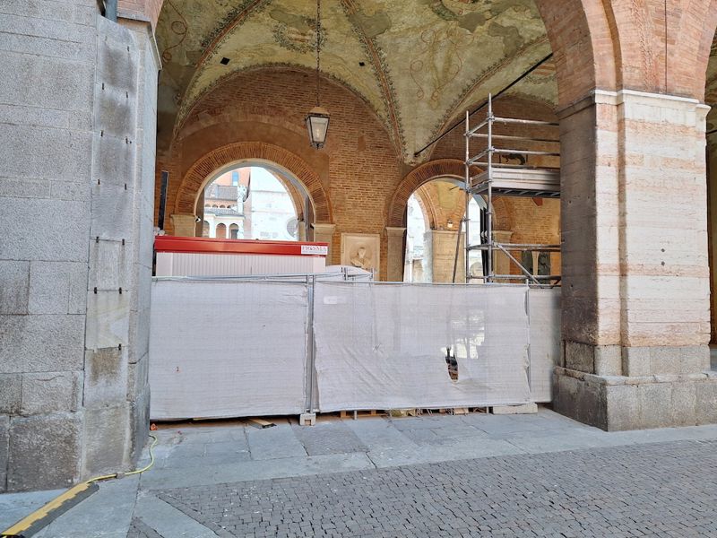 Iniziate nel settembre del 2024, le opere di consolidamento, per una spesa complessiva di 420 mila euro, sono state ritenute “indispensabili” e indifferibili” dal Comune a causa delle “gravi condizioni in cui versavano le strutture murarie dell'edificio che presentavano estesi fenomeni fessurativi e deformativi dei grandi archi murari che si aprono sulla piazza”.
