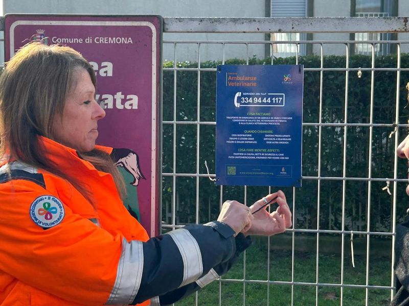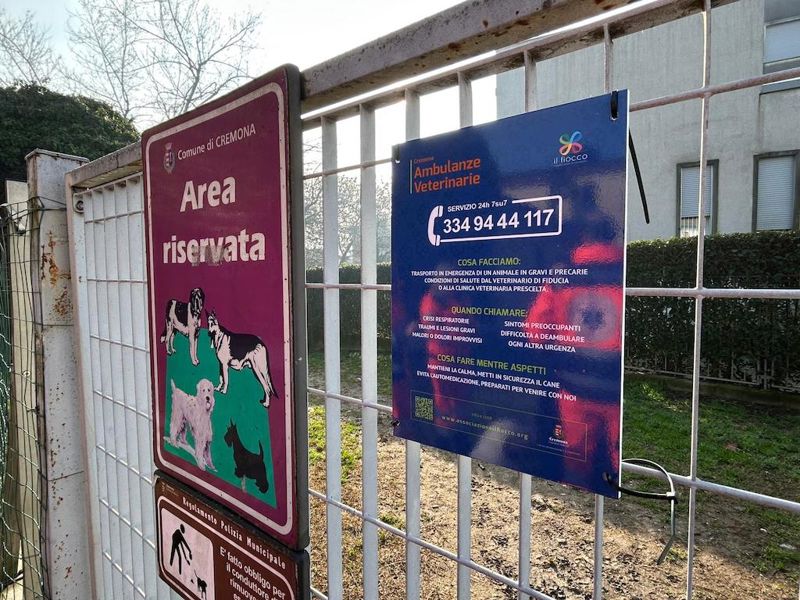 Oggi, sabato 7 febbraio, è stato posizionato il primo cartello informativo nell'area cani di Porta Mosa. Si tratta di un servizio di Ambulanze Veterinarie Cremona, progetto dell'associazione "il fiocco", per offrire supporto qualificato ai proprietari quando sono fuori casa.