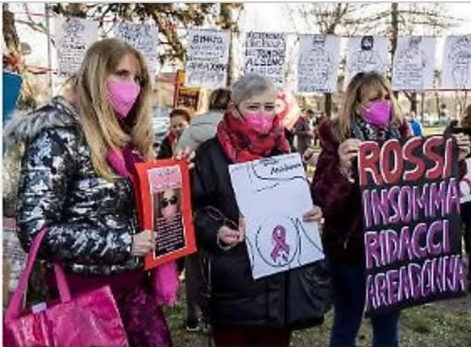 Grazie al tuo grande gruppo whatsapp di pazienti senologiche e alle varie attitudini personali mie e di Giovanna coinvolta anche lei da subito, il nostro trio ha organizzato una manifestazione davanti all'ospedale il giorno della Festa della Donna, l'8 marzo 2022.